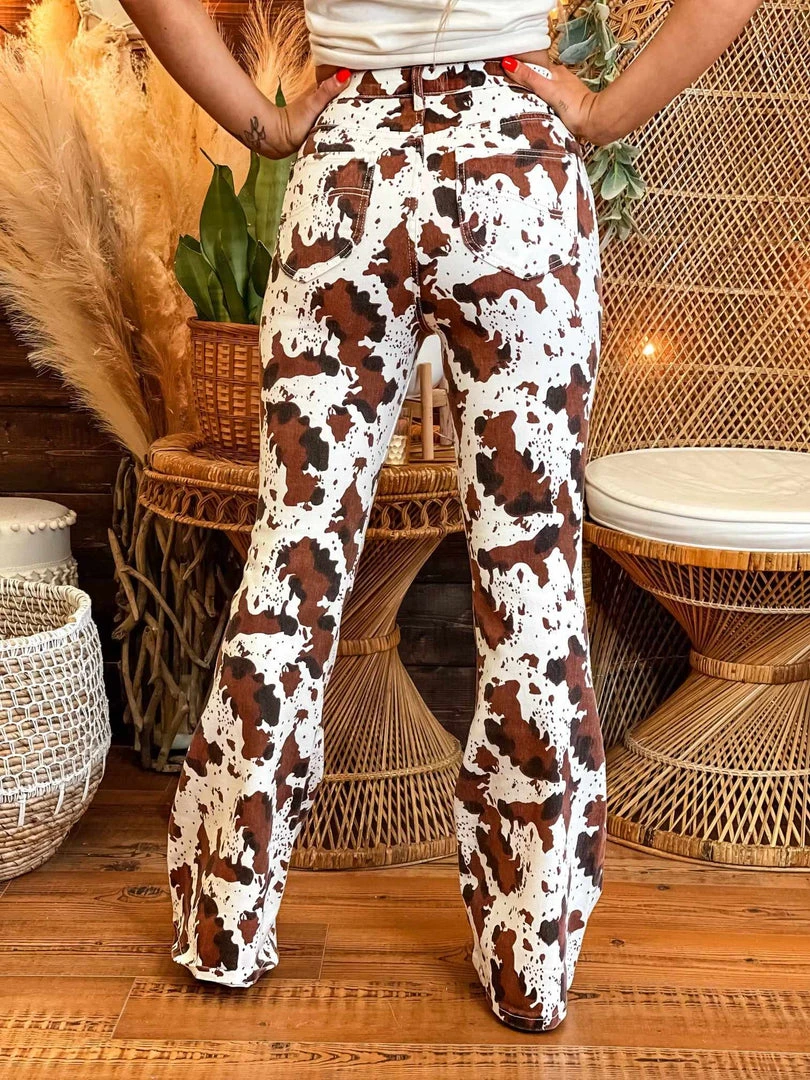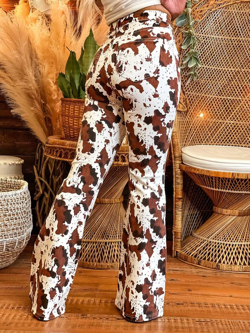 Make all of your moves in these amazing pants! Cow print is the hottest trend and we love it. It pairs perfectly with just about anything! Graphic tees keep it fun and our sequin bodysuits would keep it sassy! The possibilities are endless!Â