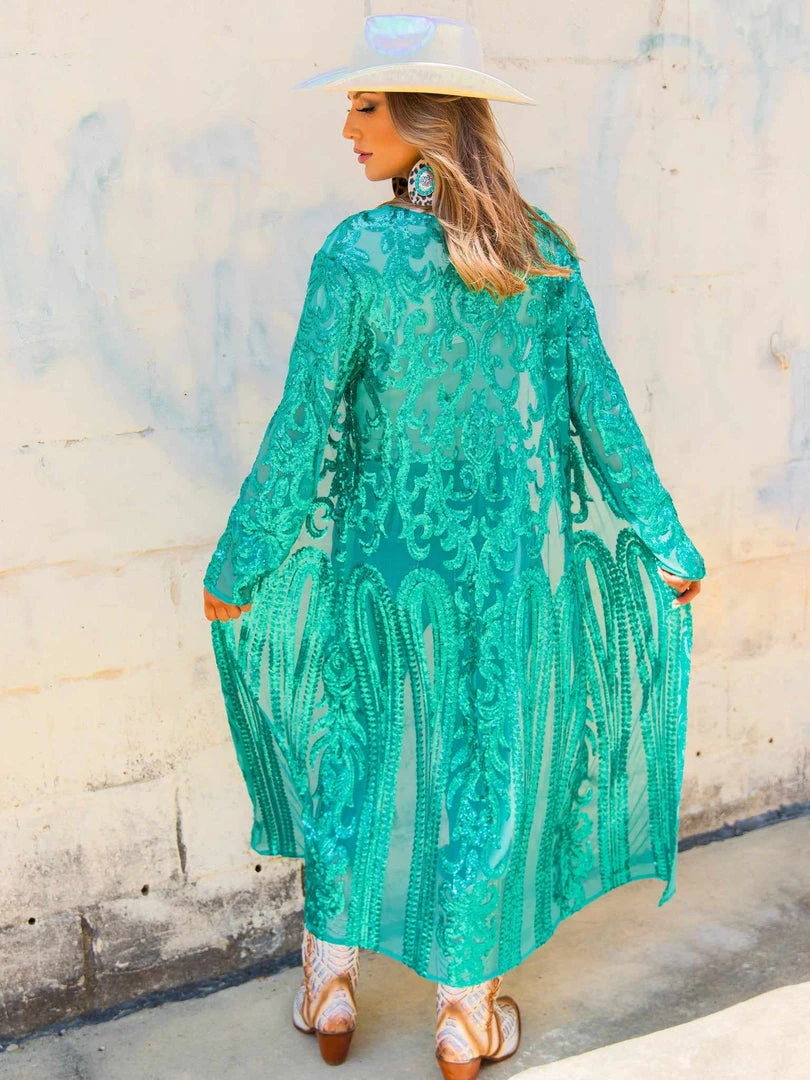 This handmade long sequin duster is absolutely AMAZING! Great for special occasions, dates, or concerts. With its complementary fit, it is sure to have you sparkle and shine anywhere you go! This piece is a LIMITED EDITION! Pair a duster with your favorite tops, bottoms or dresses for a sassy look!
