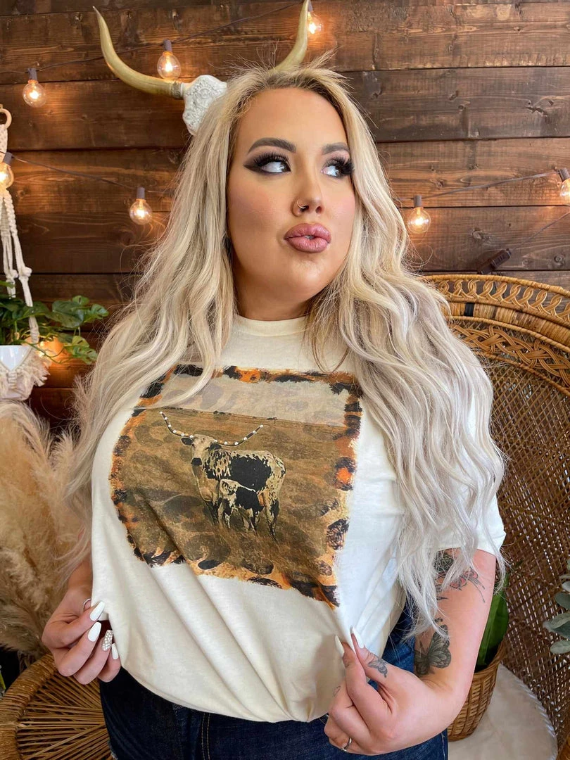 Leopard Longhorn Tee. The perfect tee for those wild and fun nights! Catch everyone’s eyes by keeping it casual or dressing it up! Printed on a unisex soft style tee!